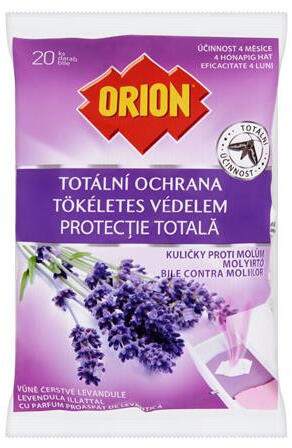 ORION molyírtó - védi a textíliákat a molyok ellen. Az Orion molyirtó golyók levendula illattal hatékony védelmet nyújtanak a ruháknak a molyok ellen a szekrényekben, dobozokban, fiókokban.