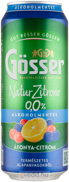 Gösser Nature Zitrone 0, 5L Áfonya-Citrom Ízű Alkoholmentes Sör (DRS)