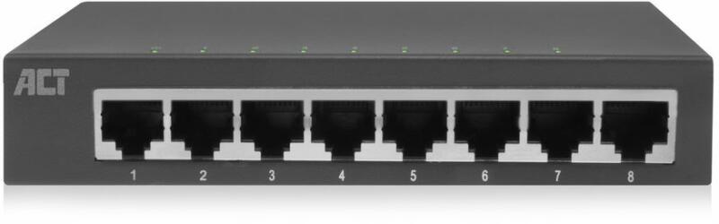 Az ACT AC4418 8 portos Gigabit Ethernet switch lehetővé teszi a hálózat egyszerű és gyors beállítását. A gigabites Ethernet switch alkalmas asztali és fali felszerelésre. A tömör fém ventilátor nélküli kialakítás jobb hőelvezetést biztosít és megakadályozza a túlzott zajterhelést. Az AC4418 olyan további funkciókkal rendelkezik, mint az automatikus átváltás és az automatikus cross-over felismerés. Az állapotjelző LED-ek jelzik a tápellátás, a kapcsolat és az aktivitás állapotát.