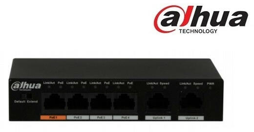Dahua PFS3006-4ET-60-V2 1x 10/100(Hi-PoE/PoE+/PoE)+3x 10/100(PoE+/PoE)+2x 10/100 uplink, 60W PoE switch (PFS3006-4ET-60-V2)