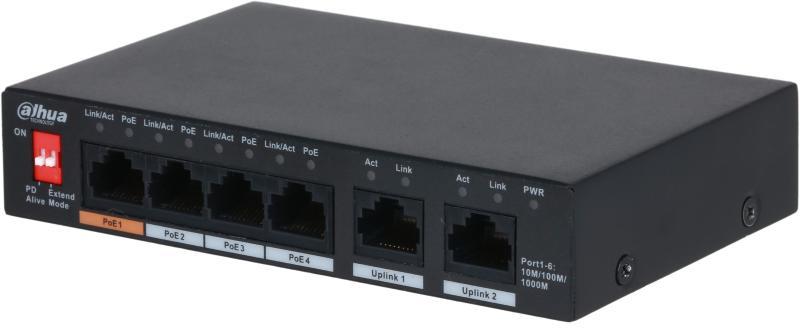 Dahua PFS3006-4GT-60-V2 1x 100/1000(Hi-PoE/PoE+/PoE)+3x 100/1000(PoE+/PoE)+2x gigabit uplink, 60W PoE switch (PFS3006-4GT-60-V2)