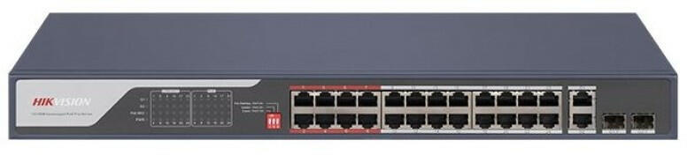 Hikvision DS-3E0326P-E (C) 26 portos PoE switch (370 W), 24 PoE + 2 kombinált uplink port, nem menedzselhető (DS-3E0326P-E_-C-)