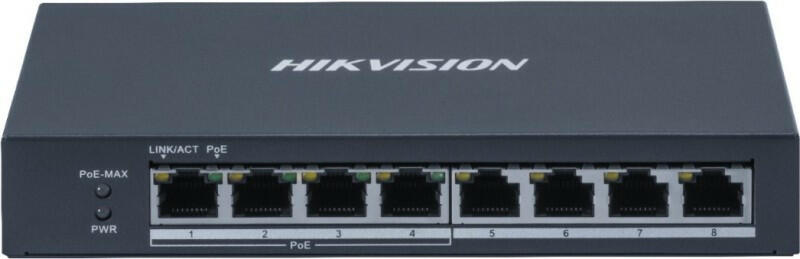 HIKVISION DS-3E0508P-O 8 portos Gbit PoE switch ; 4 PoE+ / 4 RJ45; nem menedzselhető