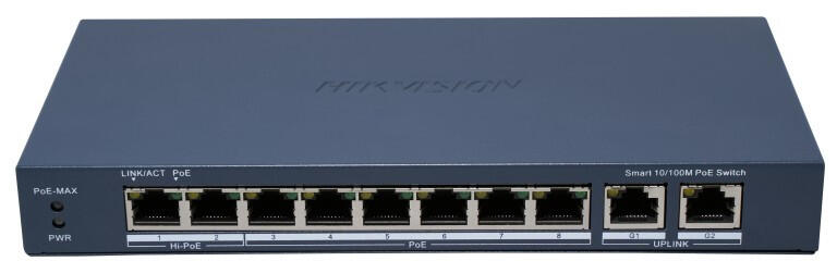 Hikvision DS-3E1310HP-EI (B) 10 portos PoE switch (110 W); 2 HiPoE + 6 PoE+; + 2 uplink port; smart menedzselhető