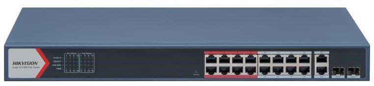 Hikvision DS-3E1318P-EI (B) 18 portos PoE switch (230 W); 16 PoE + 2 kombinált uplink port; smart menedzselhető