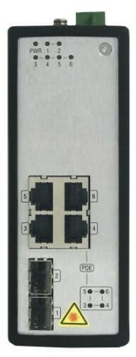 Hikvision DS-3T0506P 6 portos ipari Gbit PoE switch (120 W); 4 PoE+/ 2 SFP uplink