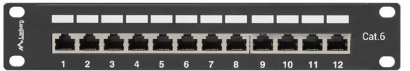 LANBERG Patch panel 12 port 1U 10" CAT. 6 árnyékolt, fekete (PPF6-9012-B) (PPF6-9012-B)