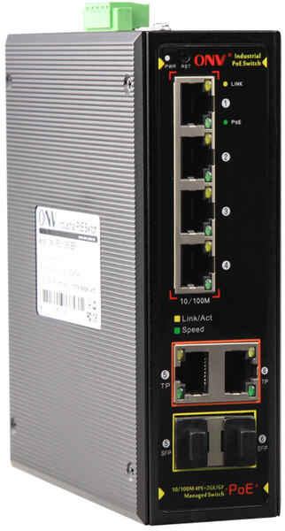 Optical Network Video Technologies ONV-IPS31064PFM Ipari Menedzselhető Switch 6 Ethernet + 2 x SFP port | Integrált DIN rögzítés (ONV-IPS31064PFM)