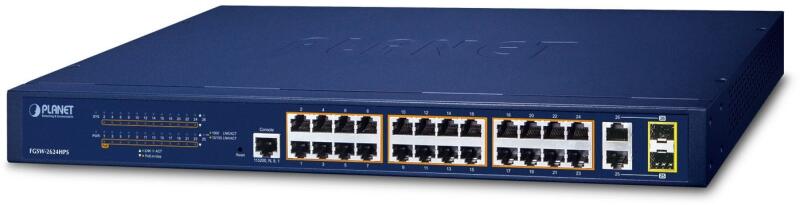 PLANET FGSW-2624HPS hálózati kapcsoló Vezérelt L2/L4 Gigabit Ethernet (10/100/1000) Ethernet-áramellátás (PoE) támogatása 1U Kék (FGSW-2624HPS) (FGSW-2624HPS)