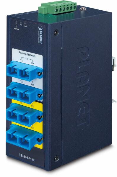 PLANET (IFB-244-MSC) PLANET Switch by-pass indus 4x SC multimode -40/+75°C hálózati média konverter 1300 nm Kék