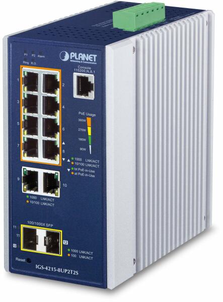 PLANET (IGS-4215-8UP2T2S) Planet IGS-4215-8UP2T2S IP30 Industrial L2/L4 8-Port 10/100/1000T 802.3bt PoE + 2-Port 10/100/1000T + 2-Port 100/1000X SFP Managed Switch