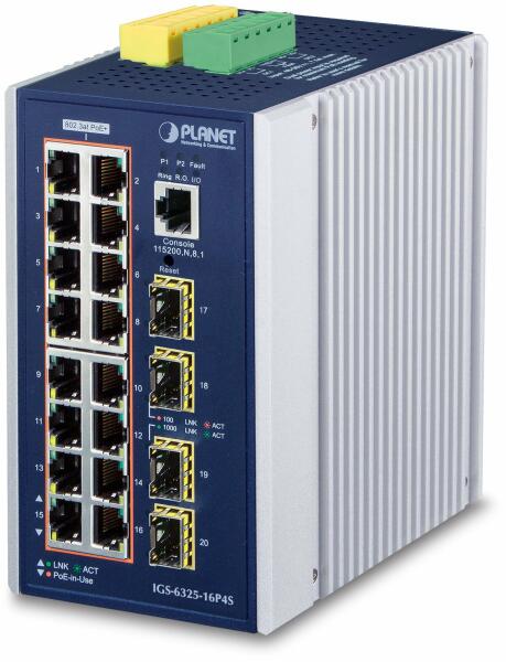 PLANET IGS-6325-16P4S hálózati kapcsoló Vezérelt L3 Gigabit Ethernet (10/100/1000) Ethernet-áramellátás (PoE) támogatása Alumínium, Kék (IGS-6325-16P4S) (IGS-6325-16P4S)