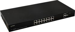 PULSAR SF116 16-portos switch 16 darab IP kamerához. Alkalmazás: Az SF116 16-portos PoE swich IP kamarákhoz ajánlott típus, amely megfelel a IEEE 802.3af/at szabványnak. Automatikusan felismeri a PoE/PoE+ táplált eszközöket és engedélyezi a portot. Tápfeszültség: 90÷264VAC. Portok száma: 18 ports (16xPoE + 2xUPLINK). PoE táplálás: 16 ports 10/100 Mb/s - IEEE 802.3af/at, 52VDC / 30W/port (PoE+). UPLINK port: 2 ports 10/100/1000 Mb/s – G1/TP, G2/TP – rögzítőhöz / switch / számítógép. Outlets: SFP UPLINK: 2 ports 10/100/1000 Mb/s – G1/SFP, G2/SFP - rögzítőhöz / switch / számítógép. Méret: Szé=442 Ma=44 Mé=224 [+/- 2mm]. Megjegyzés:G1/TP és G1/SFP csatlakozók egyszerre nem működnek. Támogatott protokoll és szabvány: IEEE802.3, 802.3u, 802.3x, CSMA/CD, TCP/IP. 30W/port - the maximum power of a single PoE port. 160W – the maximum total power for all PoE ports. Port aljaz: RJ45, SFP. additional assembly elements - bracket for RACK 19
