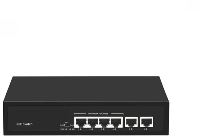 WaliSec Switch PoE - NS-PF04F20E (5port, 4x10/100 PoE Port, 2x10/100 Uplink, 65W, fekete) (NS-PF04F20E)