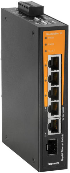 Weidmüller 2435400000 IE-SW-BL05-4GT-1GS Hálózati switch, nem konfigurálható, Gigabit Ethernet, Portok száma: 4 * RJ45 10/100/1000BaseT(X), 1 * kombi-port (10/100/1000BaseT(X) vagy 100/1000BaseSFP), IP30, -10 °C... 60 °C
