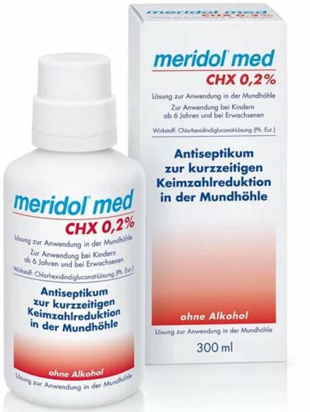 A meridol® med CHX 0,2% klórhexidint tartalmazó szájvíz, csökkenti a fogínygyulladást okozó baktériumok számát és megakadályozza a plakk kialakulását.
