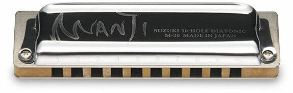 A Suzuki Manji egy forradalmian új, "kompozit" testtel készül, amellyel hangtónusa abszolút megegyezik a tradicionális fa testtel készült szájharmonikák hangtónusával, de nem lép reakcióba a nedvességgel. Óriási hangereje egyedülálló. Rendkívül precíz, könnyen kezelhető, professzionális, 10 hanglyukú, egysoros, diatonikus, dúr hangolású szájharmonika. Rendelhető hangnemek: C, G, A, D, E, F, Bb, B, F#, Eb, Ab, Db, HiG