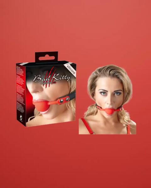 Bad Kitty - Szilikon szájpecek műbőr pánttal (piros) - edeselet