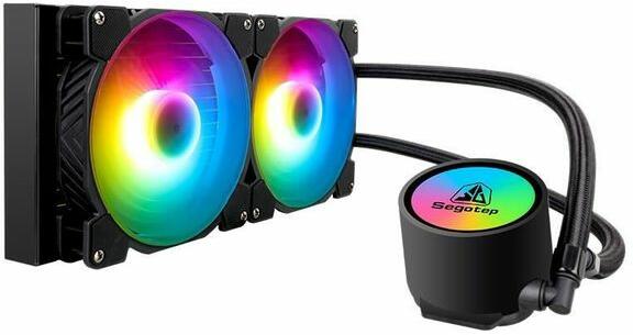 Segotep BeIced 280 aRGB processzor hűtő, AMD/Intel kompatibilis ElőnyöHűtési teljesítmény akár 280W TPD;Folyékony előretöltött rendszer;2 x 140 mm-es hidraulikus némacsapágyas ventilátor (600-1400 RPM, 1,43 mm H2O;ASUS Aura Sync / MSI Mystic Light Sync / ASRock Polychrome Sync aRGB világítással kompatibilis, 4 portos aRGB vezérlőt tartalmaz;Kompatibilitás: AMD AM4 / Intel LGA1200/2066/2011/2011/2011V3/115x;4 tűs tápcsatlakozó a ventilátorokhoz és a szivattyúhoz, valamint 3 tűs aRGB csatlakozó a világításhoz.