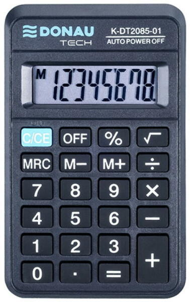 Számológép 8 számjegyes kijelzővel és gumi gombokkal. Fekete szín. 5 év garancia. Műszaki specifikáció: a % és a négyzetgyök kiszámítása automatikus kikapcsoláselemmel működő méretek 69 x 114 x 18 mm.