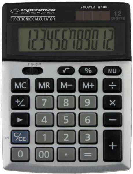 Description Electronic desktop calculator Esperanza NEWTON with a large 12-digit display. It features all basic mathematical functions, a digit correction function, and the ability to store results. The tilted display, large visible digits, and big keys make it easy and convenient to use. Equipped with built-in solar power, it is ideal for daily use in shops, offices, or at home. Perfect for work and study CLASSIC SO LAR POWEREDSOLIDLY BUILT