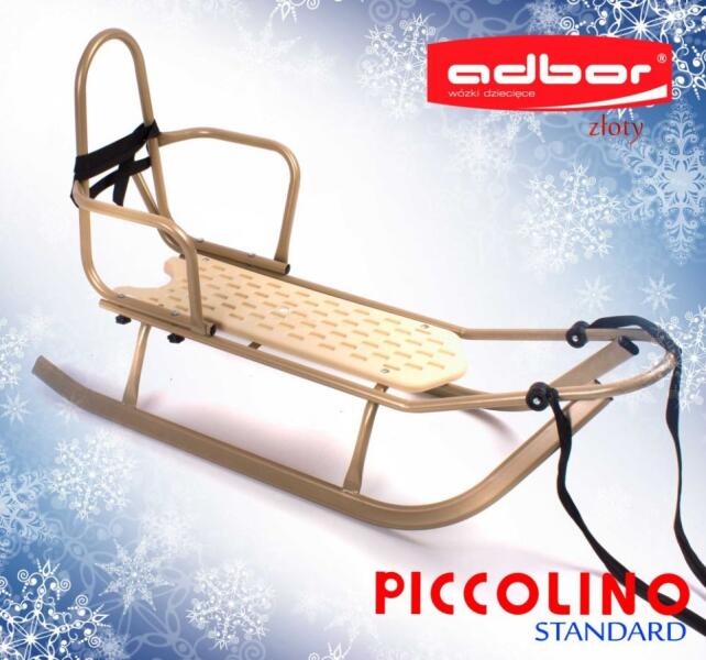 Lengyel fém szánkó Adbor Piccolino Standard háttámlával és övekkel Kényelmes és nagyon tartós fém szánkó, erős műanyagból készült ülőfelülettel. Hossza: 113 cm Szártávolság: 40cm Ülés szélessége: 18 cm Ülés magassága: 19 cm Ülés háttámla magassága: 45 cm