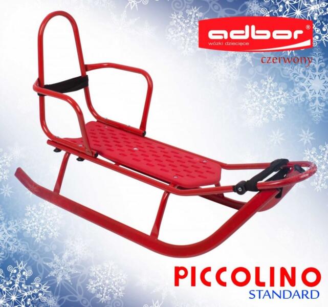 Lengyel fém szánkó Adbor Piccolino Standard háttámlával és övekkel Kényelmes és nagyon tartós fém szánkó, erős műanyagból készült ülőfelülettel. Hossza: 113 cm Szártávolság: 40cm Ülés szélessége: 18 cm Ülés magassága: 19 cm Ülés háttámla magassága: 45 cm