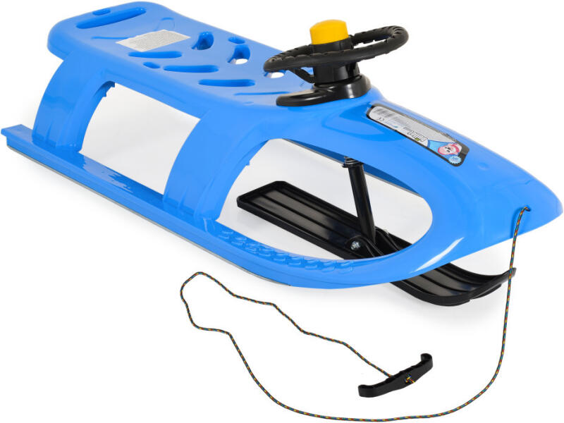 Moni Bullet szánkó, kormánykerékkel gyermekeknek 50 kg teherbírással. A szánkó kormánykerékkel ellátott, amely lehetővé teszi a biztonságós irányítást. A könnyebb hordozás érdekében húzókötéllel rendelkezik. A termék kiváló minőségű műanyagból készült, amely nagyon alacsony hőmérsékleten is ellenáll (maximum -32 °C).