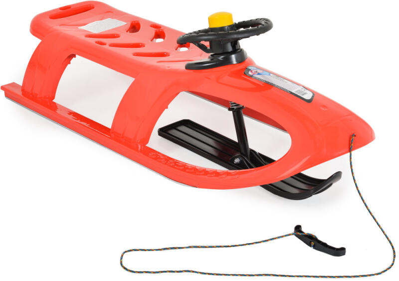 Moni Bullet szánkó, kormánykerékkel gyermekeknek 50 kg teherbírással. A szánkó kormánykerékkel ellátott, amely lehetővé teszi a biztonságós irányítást. A könnyebb hordozás érdekében húzókötéllel rendelkezik. A termék kiváló minőségű műanyagból készült, amely nagyon alacsony hőmérsékleten is ellenáll (maximum -32 °C).