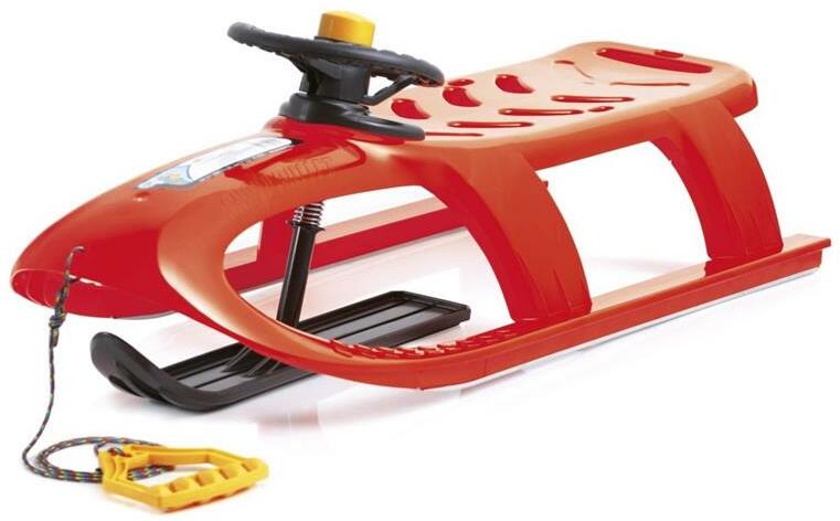 A kormány segítségével a gyerekek időben elfordulnak, hogy elkerüljék az útba eső akadályt. A még biztonságosabb utazás érdekében a szánkó