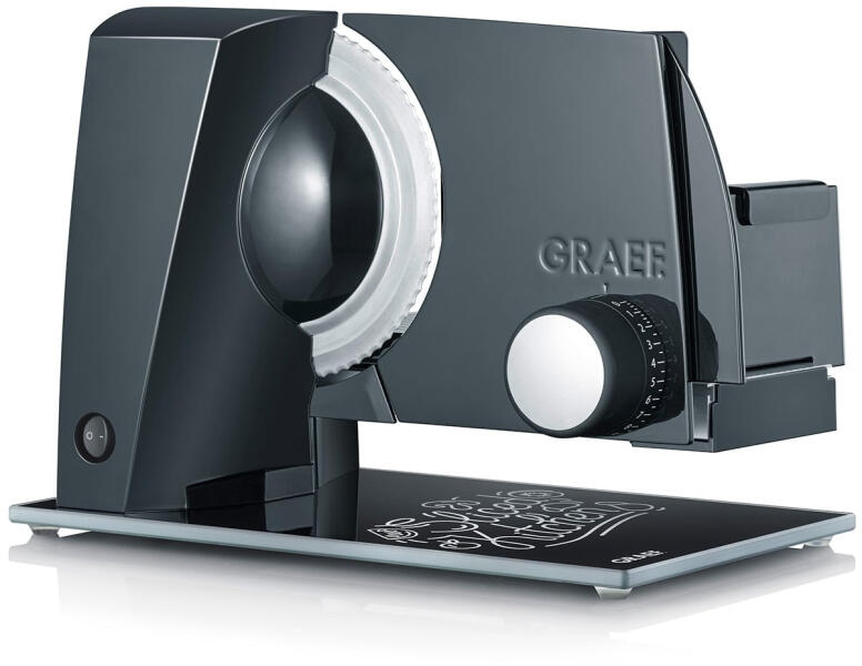 Prémium kategóriájú elektromos szeletelőgép Németországból, gazdaságos Eco Power motorral – fekete színben. Modern vonalú, energiatakarékos, mindent vágó készülék a több mint 100 éves GRAEF-től. GRAEF MultiCut elektromos szeletelőgép (fekete, S12002) A GRAEF konyhai szeletelőgépek elismerten a világ legjobbjai közé tartoznak, ahogy az el is várható egy olyan készüléktől, amelyben a precíz, német mérnöki tudás és a GRAEF több mint 100 éves konyhatechnikai tapasztalata egyesül. A MultiCut 170 W-os Eco Power motorja és 170 mm-es fogazott körpengéje előtt nincs lehetetlen szeletelési feladat, még az érlelt sajtok kőkemény kérgén is könnyedén hatol át. A kényelmes és biztonságos használat alapvető egy GRAEF szeletelőnél, ahogy az egyszerű tisztán tartás is. A MultiCut minden részletében profi gép, ami kompakt méretével, modern designjával, SlicedKitchen motívumos, edzett üvegtalapzatával bármely konyha dísze lehet. Kiváló választás mindazok számára, akiknek fontos, hogy tartós, kiváló minőségű konyhai eszközökkel szereljék fel otthonukat vagy vállalkozásukat. A GRAEF MultiCut szeletelőgép fő tulajdonságai: Handmade in Germany Masszív fém konstrukció 170 mm-es rozsdamentes, fogazott körpenge Fokozatmentesen állítható vágási vastagság (0-20 mm) Csendes működés Biztonságos, ergonomikus kialakítás Biztonsági és gyerekzár 170 W-os, energiatakarékos Eco Power motor Műanyag szeletelőtálca és Kombi-kiegészítő Fekete szín Műszaki adatok: Tulajdonság Részletek Gyártás helye Németország Motor teljesítménye 45-170 watt Kés típusa 170 mm rozsdamentes acél recés pengével Dizájn SlicedKitchen motívumos üvegtalapzat