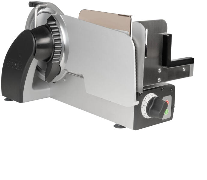 Graef Concept Line – professzionális szeletelőgépek, moduláris L-kialakítással A Concept Line a Graef moduláris, L-alaprajzú professzionális sorozata. A bal oldali szabad felületre GN-edény, tálca, vágódeszka vagy mérleg illeszthető. A hajtás hibrid rendszerű (csigakerék + bordásszíj), amely nagy nyomatékot és állandó élsebességet biztosít. A lamellás szellőzőnyílásokkal megoldott motorhűtés folyamatos üzemben is stabil hőmérsékletet tart, így a friss áru nem melegszik. Kiemelt előnyök – közös a Concept Line-ban (szakmai terminológiával) Moduláris, L-kialakítás – kiegészítők integrálása a gép „szabad szárára Késsík: függőleges vagy döntött (gravitációs), feladathoz hangolva Higiéniai gyorsszerviz – egy mozdulattal oldható zárt pengefedelet, kivehető lehúzó; a kocsi 90°-ig felhajtható Hibrid hajtáslánc – csigakerék + bordásszíj, karbantartásszegény erőátvitel kemény alapanyaghoz is „Cool drive hűtés – nagy keresztmetszetű szellőzők, állandó motortemperatúra IP-védett kapcsolótechnológia – víz- és vegyszerálló kezelőszervek Körkés-opciók – keménykrómozott sima (tapadáscsökkentő) vagy speciális fogazott tárcsakés Design – motorburkolat: fekete (alap), fehér vagy piro Paraméter Érték Hajtás hibrid (csigakerék + bordásszíj) Kés átmérője Ø 250 mm (Concept 25), Ø 300 mm (Concept 30) Szeletvastagság-tartomány 0–20 mm Vágóút 250 mm (25 L: 300 mm) Késfordulat 199 U/min Tisztítás zárt, gyorsoldású pengefedelet; kivehető lehúzó; 90°-ban felhajtható kocsi Üzem folyamatos Zajszint