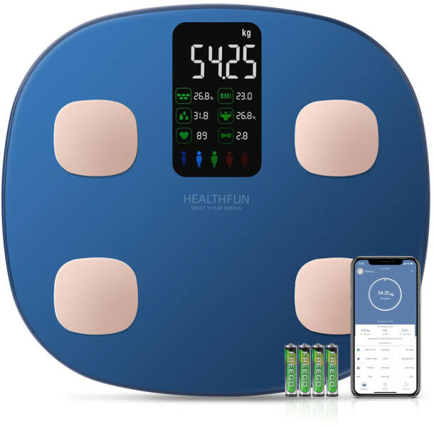 Healthfun Személyi mérleg, 15 testadattal, beleértve a pulzusszámot - kék (B0CSVZF6C8)