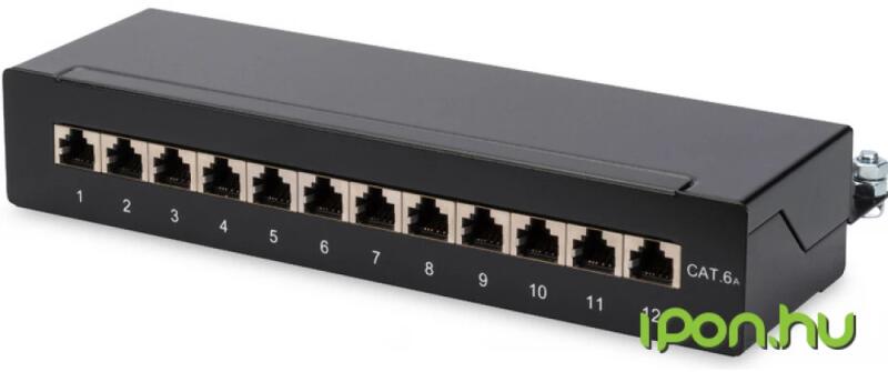 DIGITUS asztali CAT 6A javítópanel, árnyékolt EA osztályú, 12 portos RJ45, 8P8C, LSA.