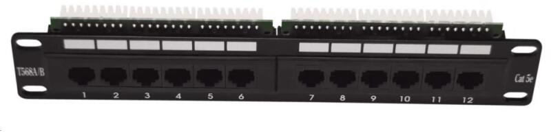 - Méret: 10"/1U - Portok száma: 12 - Kategória: Cat5E - Árnyékolás: NEM - Kötés: NEM kábelkötegelők - Szín: fekete - A kopogás típusa: Kettős sorkapocs 110-es blokk / korona