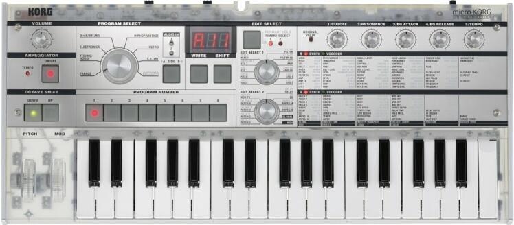 microKORG SzintetizátorA microKORG egy kompakt szintetizátor, amely kivételes szintézis élményt nyújt. Kis mérete ellenére egy erõteljes szintetizátor motorral rendelkezik, amely mind a kezdõk, mind a profi zenészek igényeit kielégíti. A DSP analóg modellezõ rendszerével, amely hasonló a híres MS-2000-hez, a microKORG széles hangspektrumot kínál, így korlátlan kreativitásra ad lehetõséget. Az intuitív hang szerkesztésre tervezett microKORG valós idejű módosításokat tesz lehetõvé, így ideális élõ elõadásokhoz, felvételekhez és számítógépes vezérléshez. Minden hang két oszcillátort tartalmaz, amelyek különféle hullámformákat és modulációs lehetõségeket kínálnak összetett hangok létrehozásához. A többmódú szűrõ és erõsítõ szekció tovább fokozza a hangformálási képességeket, míg a virtuális patch funkció a klasszikus Korg szintetizátorok patch-elését szimulálja. A microKORG SoundEditor szoftver lehetõvé teszi a számítógépes paraméter szerkesztést, grafikus felületet biztosítva a hangok átfogó kezeléséhez. Ez a szoftver könyvtárként is szolgál a hangok és beállítások tárolására és rendszerezésére. Jellemzõk: