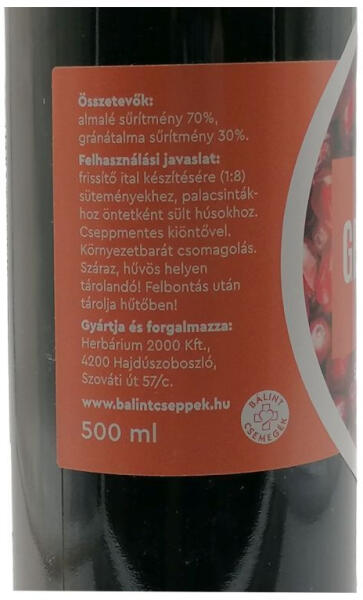 Bálint Cseppek Bálint csemegék Gránátalma szirup szabolcsi jonathán almával 500ml