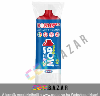 Kiváló minőségű Bonus viszkóz felmosófej. Rendkívüli nedvszívóképességgel, szinte bármilyen csavarós nyélre rögzíthető.