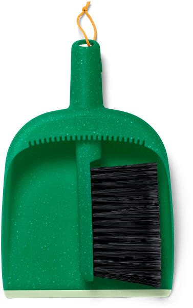 Kézi seprű és lapát Szín: Sötétzöld nyél fekete sörtékkel Sötétzöld lapát világoszöld peremmel Anyag: Nyél és szemeteslapát 66% polipropilén (újrahasznosított), 34% polipropilén Sörték: 100% polipropilén Gumi: 100% termoplasztikus elasztomer Akasztószalag: 100% poliészter Méretek: Szé x ma x mé: kb. 21,5 x 5 x 33 cm Súly: Kb. 280 g Használati tudnivalók: Kézzel tisztítsa Kéziseprű különösen vékony kefefejjel a nehezen elérhető helyekhezA kéziseprű helytakarékosan tárolható a lapátbanSzemeteslapát lehúzóéllel a sörték tisztításáhozBeltéri és kültéri kemény- és textilpadlókhozAkasztózsinórralÚjrah asznosított anyaggalEz a kéziseprű műanyaghulladékot tartalmaz.