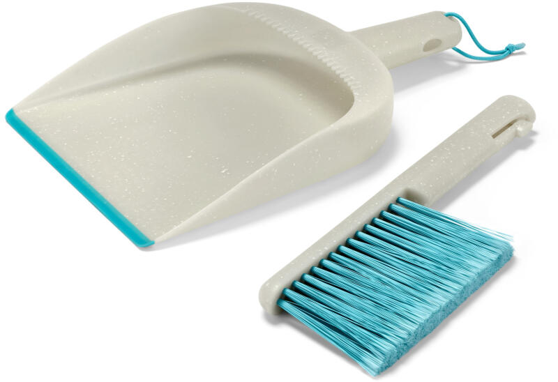 Kézi seprű és lapát Szín: Szürke, zöld Anyag: Markolat és szemeteslapát 66% polipropilén (újrahasznosított), 34% polipropilén Sörték: 100% Polipropilén Gumi: 100% termoplasztikus elasztomerek Akasztószalag: 100% poliészter Méretek: Szé x ma x mé: kb. 21,5 x 5 x 33 cm Súly: Kb. 280 g Használati tudnivalók: Kézzel tisztítsa Kéziseprű különösen vékony kefefejjel a nehezen elérhető helyekhezA kéziseprű helytakarékosan tárolható a lapátbanSzemeteslapát lehúzóéllel a sörték tisztításáhozBeltéri és kültéri kemény- és textilpadlókhozAkasztózsinórralÚjrah asznosított anyaggalEz a kéziseprű műanyaghulladékot tartalmaz.