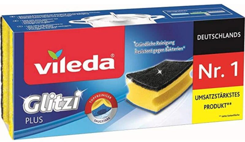 Vileda Glitzi Plus - Mosogatószivacs 3 dbEAN: 4003790001444 Minőségi és gyakorlati segítőA Vileda Glitzi Plus egy kiváló minőségű kivitelű mosogatószivacs. Tökéletes gondoskodást biztosít az edények és konyhai eszközök számára. Védi a körmöketNagyon praktikus funkció a körömvédő, amely megakadályozza a mosás közbeni sérüléseket. Drót tisztító kristályokkalA tömör és kemény huzal tisztítókristályokkal van ellátva. Ideális a közönséges edényeken lévő beégett szennyeződések eltávolítására. Antibakteriális hatásokA szivacs képes akár 99,9%-ban megakadályozni a baktériumok szaporodását. Abszorpciós képességekA szivacs alján szivacsos kendő található. Fokozott folyadékfelvételt vagy kíméletes mosási képességet biztosít. CsiszolóanyagA szivacs csiszolóanyagból készült az alapos tisztítás érdekében. Antibakteriális hatása is van. A csomag a következőket tartalmazza3x Vileda Glitzi Plus szivacs