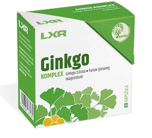 Az egymás hatását erősítő ginkgo és ginzeng kivonatok a hagyományos keleti gyógyászat évszázadok óta elismert szerei. Hatásukat mára a modern orvostudomány kutatásai által is igazolták. A páfrányfenyő (Ginkgo biloba) az öregedéssel összefüggésben elősegíti a kognitív képességek és a memóriafunkció megőrzését. Hozzájárul a mentális egyensúly fenntartásához. Elősegíti a perifériás keringést, ami különösen hasznos a szemnek és a fülnek. Hozzájárul a jó halláshoz és látáshoz. A ginzeng fokozza a szellemi és fizikai teljesítőképességet, frissességet, hozzájárul a mentális egyensúly fenntartásához. Jótékony hatású lehet fáradtság, stressz esetén, hozzájárul az optimális szellemi aktivitás és kognitív képességek fenntartásához. Támogatja a memóriafunkciót. A ginkgóval kombinációban támogatja a kognitív funkciót, hozzájárul az állóképesség megőrzéséhez, illetve az agyi működést befolyásoló normális keringés fenntartásához. A magnézium hozzájárul a fáradtság és a kifáradás csökkentéséhez, az idegrendszer megfelelő működéséhez és a normál pszichológiai funkció fenntartásához. Hatóanyagok mennyisége: Hatóanyagok 1 kapszulában NRV Páfrányfenyő levél kivonat, melyben flavon-glikozid 24 bilobalid 6 120 mg 28,8 mg 7,2 mg – Ázsiai ginzeng gyökér kivonat (4:1) 100 mg – Magnézium 138 mg 37 NRV: napi beviteli referencia érték (Nutrient Reference Value) felnőttek számára. Hatóanyagok jellemzői: Páfrányfenyő (Ginkgo biloba): A ginkgo hozzájárulhat az optimális kognitív és memória funkciók fenntartásához. Ázsiai ginzeng (Panax Ginseng): A ginzeng jótékony hatású lehet fáradtság, stressz esetén, hozzájárulhat az optimális szellemi aktivitás fenntartásához, az optimális kognitív és memória funkciók fenntartásához. Magnézium: A magnézium hozzájárul az idegrendszer megfelelő működéséhez, a normál pszichológiai funkció fenntartásához, a fáradtság és a kifáradás csökkentéséhez. Alkalmazás: Az LXR GINKGO KOMPLEX javasolt mennyisége felnőtteknek naponta 1 kapszula, folyadékkal elfogyasztva! Miért válassza ezt a készítményt? Magyar gyógyszerészek által kifejlesztett, egyedülálló receptúra szerint készül. Magasabb dózisú és egymás hatását fokozó hatóanyagokból tevődik össze. Magyarországon, GMP minősített (a gyógyszergyártás nemzetközi minőségbiztosítási rendszere) gyártóüzemben készül. A gyártás folyamata minőségbiztosító gyógyszerész által ellenőrzött. A készítmény analitikai és tisztasági vizsgálatait egyetemi és nemzetközi akkreditált laborokban végzik. Kizárólag gyógyszertárakban, a gyógyszerész szakmai támogatásával kerül forgalomba. Figyelmeztetések: Ne lépje túl az ajánlott napi mennyiséget! Gyermekek elől elzárva, hűvös, száraz helyen tárolandó! Véralvadásgátló gyógyszerekkel való kezelés esetén a készítmény használatáról konzultáljon kezelőorvosával vagy gyógyszerészével! Az étrend-kiegészítő nem helyettesíti a vegyes étrendet és az egészséges életmódot.