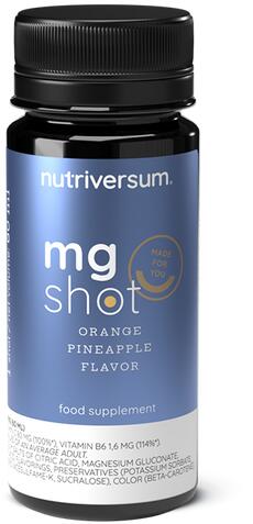 Szerves magnézium a mindennapokraTudtad?A Nutriversum kompakt magnézium shotja szerves magnéziumot, valamint B6-vitamint és C-vitamint tartalmaz, hogy gyorsan és hatékonyan támogassa a szervezeted, miközben a narancs-ananász íz frissítő élményt nyújt!Gyors megoldást keresel a legnagyobb rohanásban is? A Nutriversum Magnesium Shot egy narancs-ananász ízesítésű, gyorsan felszívódó ital, amely biztosítja a magnézium napi adag mennyiségét, kiegészülve C-vitaminnal és B6-vitaminnal . A Nutriversum vitamin termékcsalád egyik kiemelkedő tagjaként olyan megoldást nyújt, amely egyszerre praktikus és ízletes. Kis kiszerelésének köszönhetően pedig mindig kéznél lehet, így a magnézium pótlása sosem volt még ennyire egyszerű és élvezetes!Ha a legjobb szerves magnézium bevitele a cél, akkor a magas hatóanyag-tartalmú magnézium shot Neked lett kitalálva. A magnézium B6 vitamin kombinációja mindemellett tökéletes választás számodra, ha a kávé mellett egy komplex magnézium löketre vágysz a nap folyamán. A teljesség jegyében kiegészítettük még C-vitaminnal is, hogy az edzéseid és a mindennapok során is a legjobb formádat hozhasd!Legfőbb jellemzők250 mg magnéziumtartalomfrissítő ízesítésselszerves magnéziumforrás Praktikus magnézium adagolás útközbenA magnézium vitamin shot ampullás kiszerelése lehetővé teszi, hogy egyszerűen magaddal vidd és bárhol fogyaszd , legyen szó edzés előtti felkészülésről, munkáról, vagy egy hosszú nap utáni feltöltődésről. A magnézium vitamin gyors felszívódása azonnali támogatást nyújt a szervezet számára, miközben a narancs-ananász íz frissítő élményt biztosít. Ez az innovatív formula a magnézium napi adagját kényelmesen, egyetlen ampullában nyújtja. A magnézium B6 vitamin kombinációja magas hatóanyag-tartalommal , egy koncentrált formulába zárva támogat a mindennapokban. Ha egyszerű, hatékony és finom megoldást keresel, akkor a Nutriversum vitamin termékcsaládjának legújabb tagja, a magnézium shot lesz számodra a tökéletes választás!A magnézium shot előnyei