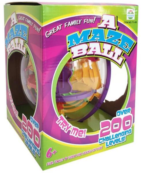 A(z) **3D labirintus labda ügyességi játék** – Vezesd végig a fémgolyót a labdába épített pályán! A 3D labirintus labda ügyességi játék egy átlátszó labdába zárt golyópálya, ami segíti a kézügyesség fejlődését, és türelemre tanítja a játékost. A fém golyót végig kell vezetni egy akadálypályán, aminek a szakaszai külön színekkel vannak jelölve, a játék összesen 96 szakaszt tartalmaz. A játékhoz biztos kezekre és kötélidegekre van szükség, ha már begyakoroltad, hogyan jut el a golyó a rajtvonaltól a célig, akkor már időre is játszhatsz vele. A 3D labirintus labda ügyességi játék csomagolási méretei: 18 x 18 x 24 cm.