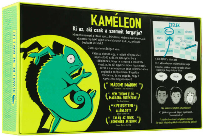 A Kaméleon egy asszociációs , titkos szerepes parti játék 3-8 fő részére. Bár a doboz 14 éven felülire lövi a játékot, de ez inkább csak biztonsági célzás. A játék mechanikája kb 8 éves kortól játszható, mindössze a téma kártyák némelyike lehet még ismeretlen az ilyen idős lurkóknak.