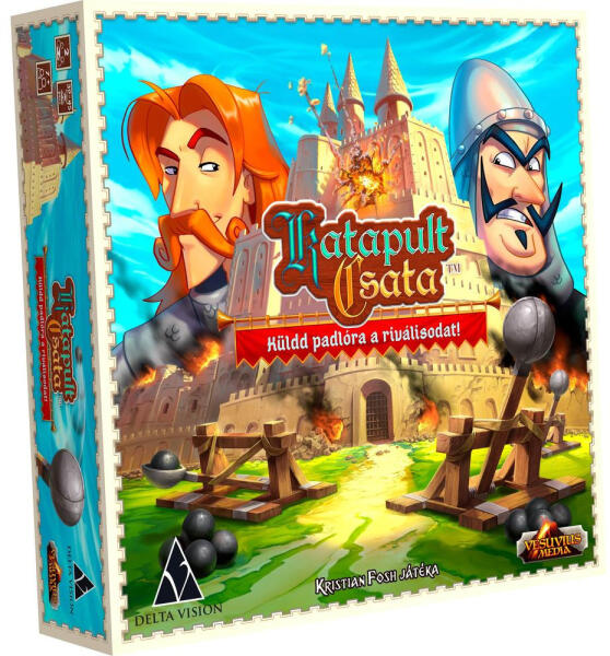 Az elmúlt időszak legalacsonyabb ára: 18490 Ft. Üdvözöld a Katapult Csata társasjáték izgalmas világát, ahol a katapultok csatájában mérik össze erejüket a játékosok! Válaszd ki a családodat - Chaufort vagy Cunningfields - és kezd el a stratégiai építkezést és taktikázást! Hozz létre saját váradat és helyezd fel a katapultodra, majd indítsd el a támadást a célzás és lövés fázisaiban, hogy lerombold az ellenfelek várait és ledöntsd a csapatukat! A győzelemért harcolj és légy az utolsó talpon maradt játékos a csatatéren! A Katapult Csata játék lehetőséget ad arra, hogy megtervezd és felépítsd saját váradat, amit a katapultoddal megvédhetsz a támadó ellenfelek ellen. Válaszd ki a családodat, akiknek az oldalán harcolsz - Chaufort vagy Cunningfields - és használd ki a saját családod képességeit a győzelem érdekében! Használd ügyességedet és stratégiai érzékedet a célzás és lövés fázisaiban, hogy pontosan eltaláld az ellenfelek várát és lerombold a védelmüket! A csata végső célja, hogy minden ellenséges csapatot ledönts, és győzelmet arass a csatatéren! A Katapult Csata játék körökre osztott, és minden körben minden játékos sorra kerül. Minden játékos fordulója négy fázisra oszlik: Taktika, Célzás, Lövés és Takarítás. Kövesd ezeket a fázisokat, és döntsd el ügyesen a következő lépéseidet, hogy elérjed a győzelmet! A játék addig tart, amíg csak egyetlen játékos marad a csatatéren. A játék tartalma: