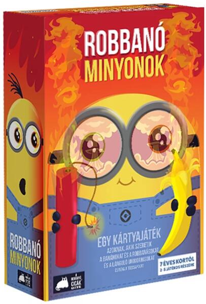 Robbanó Minyonok A kártyajáték Azoknak, akik szeretik a banánokat és robbanásokat és odavannak a lángoló egyszarvúakért És néha tűzcsapokért... A Robbanó Minyonok a díjnyertes kártyajátékot ötvözi az Illumination ikonikus Minions franchise-ával. Ebben a rendkívül stratégiai, a Minyonok által vezérelt kártyajátékban, ha egy Robbanó Minyont húzol, felrobbansz, és kiesel a játékból. A pakliban lévő összes többi kártya segít elkerülni, hogy robbanó miniont húzz. Vagy hatástalaníthatod a Robbanó Minionokat, ha olyan dolgokkal tereled el a figyelmüket, mint a szenvedélyes karaoke, a korlátlan fagylaltkanalak, a zajszűrő fejhallgató vagy a banánágy. A Minyonok egy új, a játékot megváltoztató kártyát hoznak magukkal, amely lehetővé teszi a játékosok számára a kártyák klónozását! Teljesen új, vidám Minyonok-illusztrációk a The Oatmeal alkotójától. Az Illumination ikonikus Minyonok franchise-ból ismert és szeretett karakterekkel. Családbarát játék, amely könnyen megtanulható és gyorsan játszható. Tartalmaz 72 kártyát egy dobozban, menő lentikuláris dizájnnal és útmutatóval.