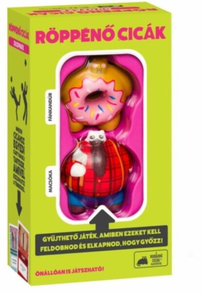 Ha valaki még több mókát szeretne, akkor érdemes beszerezni a Röppenő cicák duopakkot, hiszen Macsóka és Fánkandúr, a két új karakter még több lehetőséget biztosít a mókás röptetésre. Tökéletes választás azoknak, akik szeretnék tovább bővíteni a cicás arzenált és fokozni a játékélményt. A Röppenő cicák egy könnyed, vicces ügyességi társasjáték, amelyben a játékosok célja, hogy minél több cicát juttassanak be a doboz közepén található kosárba.