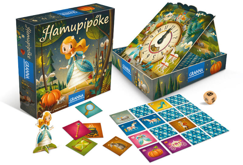 Mesebeli társasjáték kicsiknek, a klasszikus Hamupipőke mese elemeivel. Gyönyörű képi világ egy kooperatív játékban amit akár egyedül is játszhatsz! Találd meg az összes kelléket ami szükséges a bálra még mielőtt éjfélt üt az óra. Gyűjtsd össze az egereket, a cipellőket vagy akár a tököt és a hintót hogy eljuthass a bálba és részese legyél ennek a varázslatos mesének. Tornáztasd a memóriád vagy használd fel a különleges kártyalapok adottságait hogy az idő lejárta előtt összegyűjtsd a párokat.