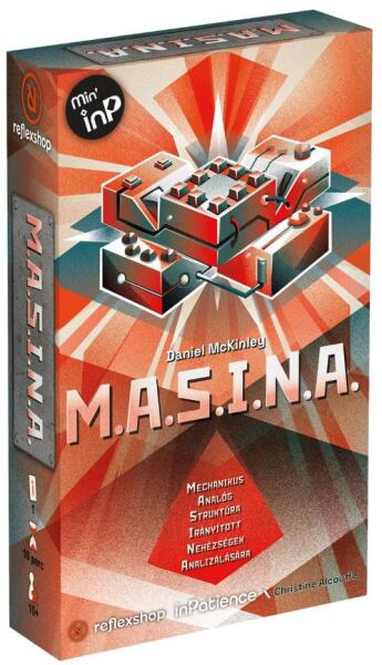 A M. A. S. I. N. A. egy örökké változó rejtvényekkel teli gép, amit csak Te tudsz megfejteni. A feladványok nehezednek, így az elmédet, a géphez hasonlóan, folyamatosan frissen kell tartanod. A játék kiváló egyszemélyes élményt nyújt, és egyedi módon nem csupán egyszer, hanem bármennyiszer végigjátszható, hisz a benne lévő rejtvények mindig véletlenszerű alakot vesznek fel. Ismerd ki a nyomokat, fejtsd meg a titkokat! A M. A. S. I. N. A. egy végtelenszer újrajátszható egyfős puzzle-játék. A feladatod úgy kezelni a rácslapkán lévő 8 kockát , hogy feloldd velük a szélső fogaskerékkártyákat . Mindegyik megoldott fogaskerékkártya egyedi esélyt ad további kártyák felfedésére, de csak limitált erőforrásaid bölcs felhasználásával tudod majd feltörni ezt a szokatlan szerkentyűt. Megfejted a M. A. S. I. N. A. (Mechanikus Analóg Struktúra Irányított Nehézségek Analizálására) titkait? Megtalálod a megfejtést ebben a folyton változó logikai játékban? A központi gép fogaskerekei nem engedelmeskedne. Meg tudod oldani a rájuk írt rejtélyt, hogy felülírd a programot? Helyezd át a kockákat az előírt minta alapján, és gyűjtsd be a fogaskereket. Vajon a haladó feladványokkal is boldogulni fogsz? Minél több fogaskereket oldasz fel, annál több képességed lesz. De ha sokszor hibázol, az könnyen a kalandod végét jelentheti. Játékmenet - A körödben feloldhatsz vagy bütykölhetsz.